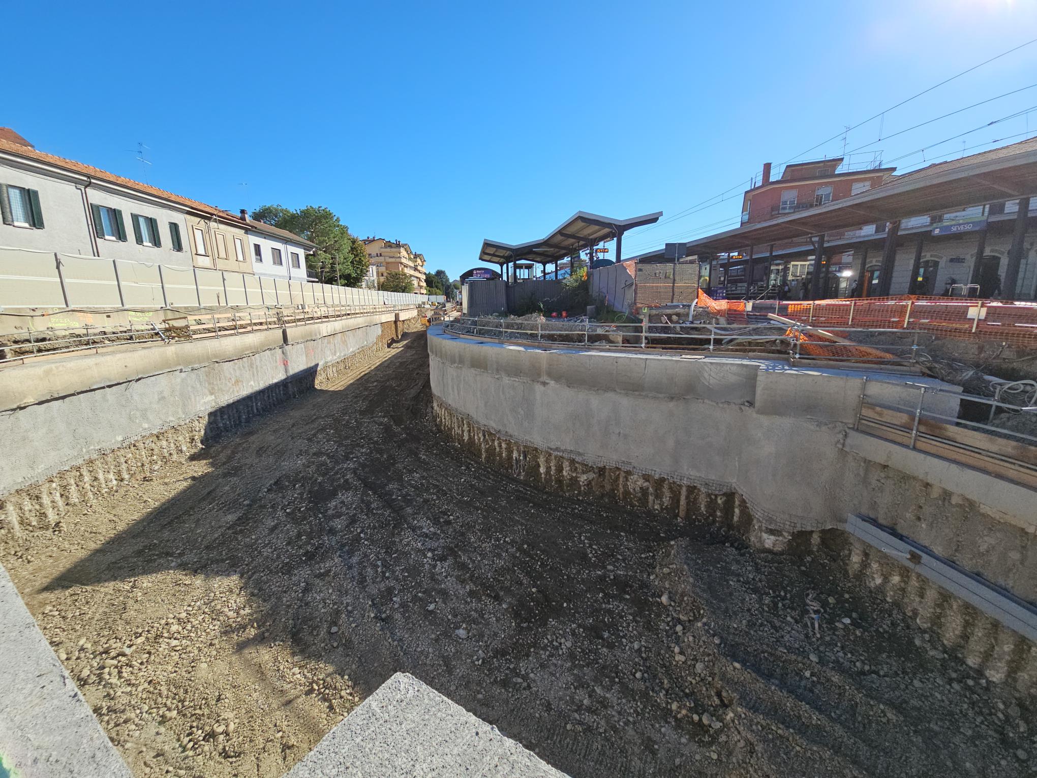 A breve inizierà la realizzazione della nuova sede del binario 2 (posa del pietrisco) e nella seconda metà del mese di ottobre 2025 è prevista la costruzione del nuovo binario 2. La difficoltà nel reperimento di alcuni macchinari per l’esecuzione delle opere ferroviarie e le recenti condizioni metereologiche non favorevoli hanno rallentato il cronoprogramma delle lavorazioni. L’attivazione del secondo binario e l’apertura del nuovo sottopasso di stazione sono previste nel mese di dicembre.